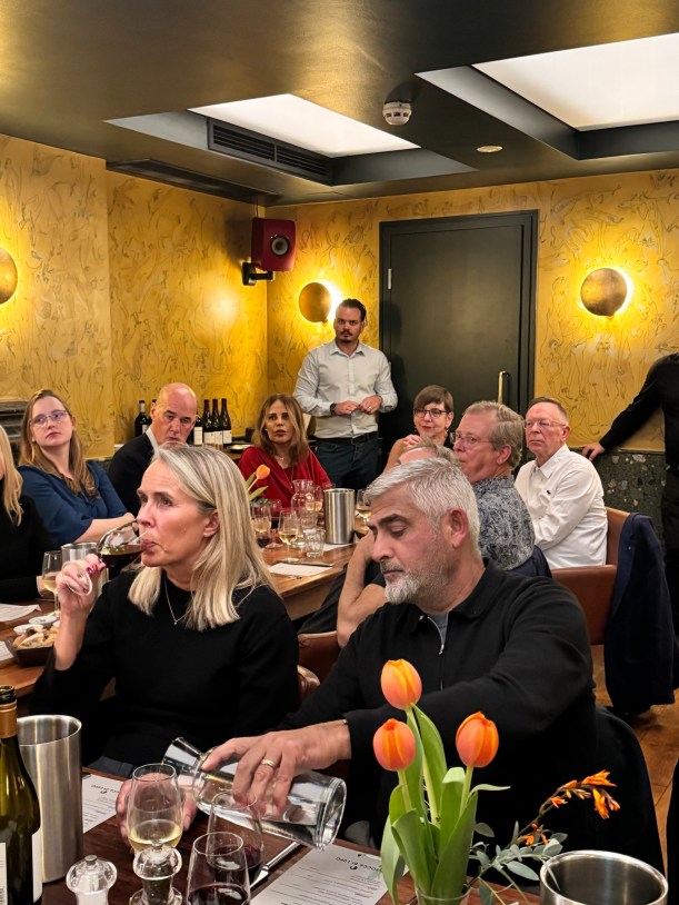 We had a selection of five wines including Coleraine, served with a three-course dinner in the private room of the award-winning Boca Di Lupo restaurant in Soho.Tickets were priced is £95pp. We had a full house of 32 people.